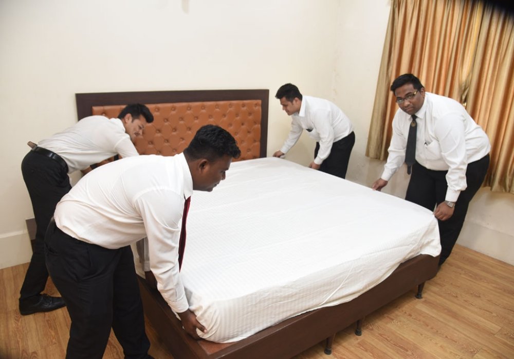 Affiliated with Mangalyatan University, UP, the program combines classroom learning with hands-on training in food production, front office operations, housekeeping, and hospitality services.